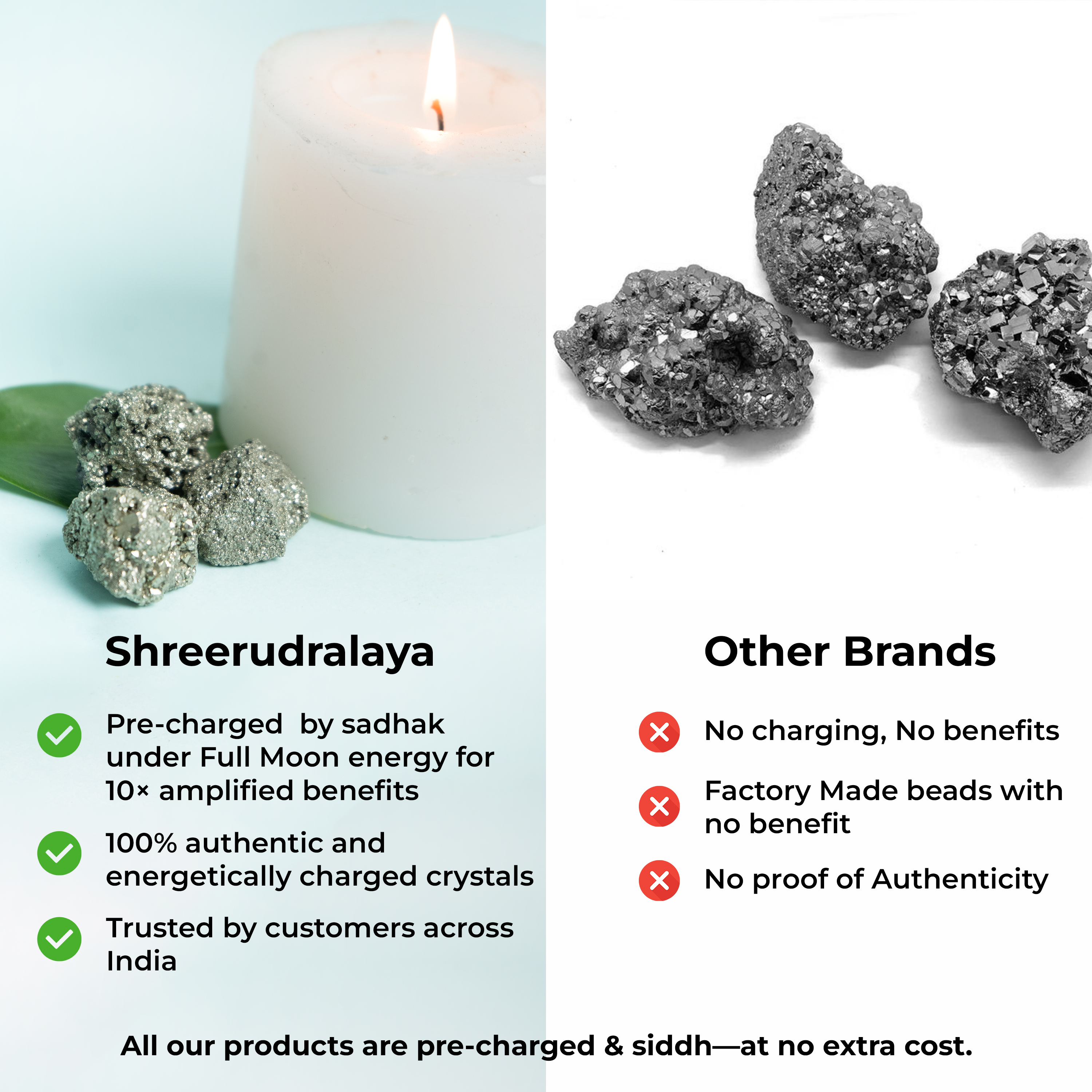 Rudraksha, crystals, and healing stones help balance your energy, reduce stress, and promote emotional and spiritual well-being. They enhance focus, mental clarity, and overall vitality, while protecting against negative energies. These natural treasures support manifestation, positivity, and harmony in mind, body, and spirit.