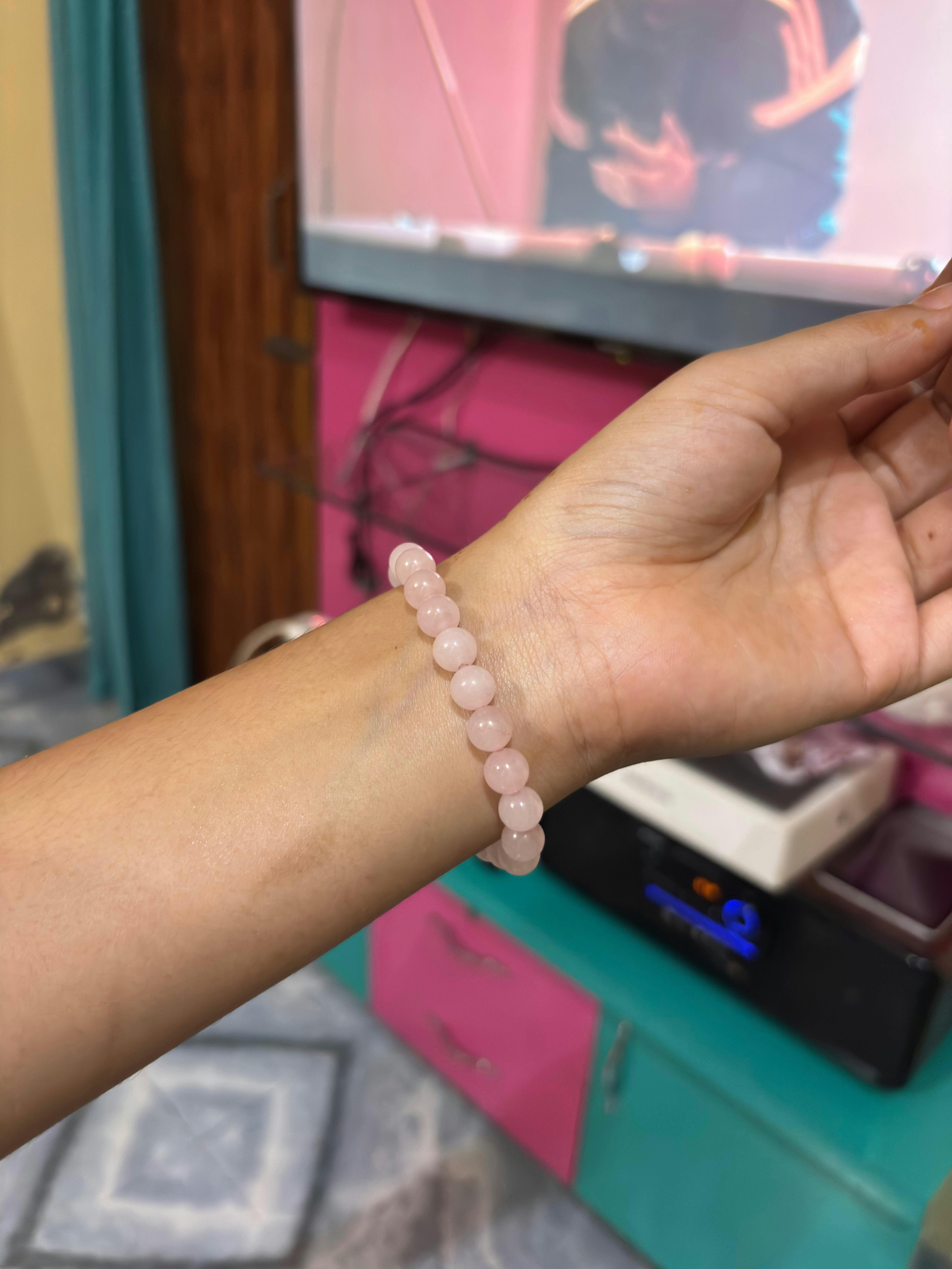 Embrace the gentle energy of love, compassion, and peace with our Natural Rose Quartz Bracelet. Known as the Stone of Unconditional Love, Rose Quartz promotes emotional healing, harmony, and inner balance. This beautifully crafted bracelet not only enhances your aura with soothing vibrations but also makes a stylish accessory for daily wear. Perfect for those seeking self-love, positive relationships, and emotional strength.